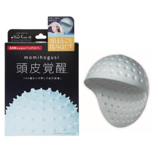 疲れを癒す、元気を贈る ヘアキュアオール スペシャル スカルプキャップ 2,970円 キャップ内側の142個の突起で頭皮全体を一気に刺激でき、自宅で簡単にヘッドスパ感覚を楽しめます。