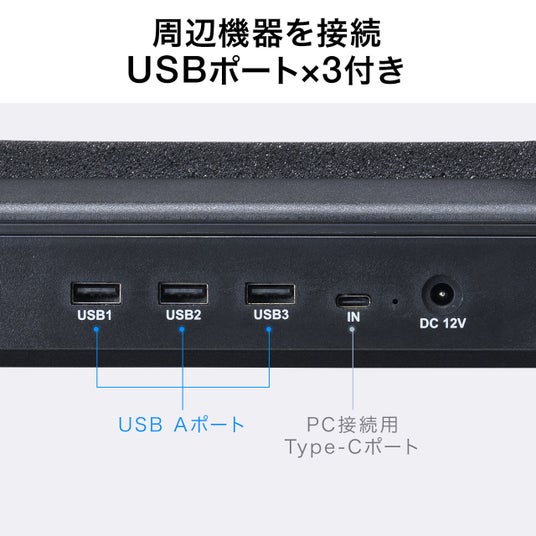 PCと接続すればUSBハブ機能も使えます。USB Aを3ポート搭載しています。