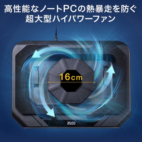 本製品は、大型ターボファンで高性能なノートPCの熱暴走を防ぐ、ノートパソコンクーラーです。