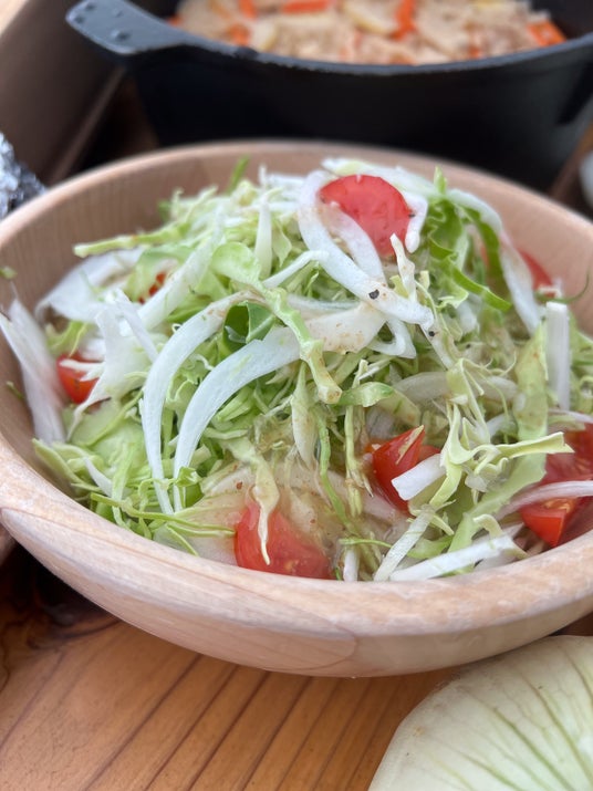 さらに、群馬県産福豚の肩ロースとポークソーセージもご用意。群馬の味覚が詰まったお重をご堪能ください。 ■春キャベツと新玉ねぎのサラダ