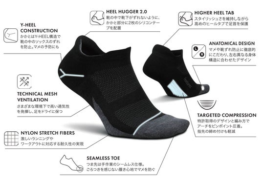 Feetures(R)(フィーチャーズ)は、30年以上にわたるスポーツソックス業界でのキャリアを持つ創設者Hugh Gaitherを中心とした、米国ランニングソックスのトップシェアを誇るリーディングカンパニー。2002年の創業以来、『ベストパフォーマンスを引き出す最高のソックスを作る』事をミッションとしています。ランニングをはじめとする様々な運動シーンに応じて選ぶことができる幅広いアイテムレンジ、特許を取得しているピンポイント圧着【Targeted Compression】など、まるでオーダーメイドのような抜群のフィット感が世界中のランナーから支持を集めています。廃棄物の削減にも取り組んでおり、一生涯履くことができるソックスを生産することでサステナブルな未来を目指しています。