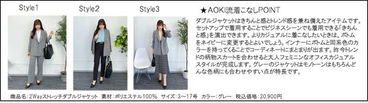 女性が抱える『服装ストレス』を徹底解剖するとともに、それらを解決するアイテムや、AOKI流のおすすめジャケットコーディネートをご紹介します。