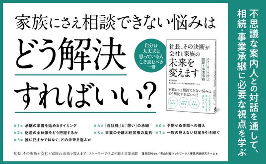 本書は、相続・事業承継で最善の選択をするために必要な知識や考え方をストーリー形式でわかりやすく学べる一冊。オーナー経営者や土地持ち資産家、その後継者やご家族の方はもちろん、創業100年企業のシェア世界一を誇る日本だからこそ、より多くの方に関心を寄せていただきたい内容になっています。
