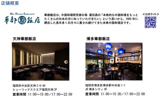 九州を中心に58店舗の飲食店を展開するJR九州フードサービス株式会社が運営する、本格中華料理店『華都飯店(シャトーハンテン)』の2店舗にて、期間限定メニュー「冷麺」がバリエーション豊かに登場します。素材にこだわり、特製の自家製ダレで味わう夏季だけの特別メニューをぜひお楽しみください。 商品概要 ■天神華都飯店 皆さまに長年ご愛顧いただいている天神華都飯店は今年で35周年を迎えました。