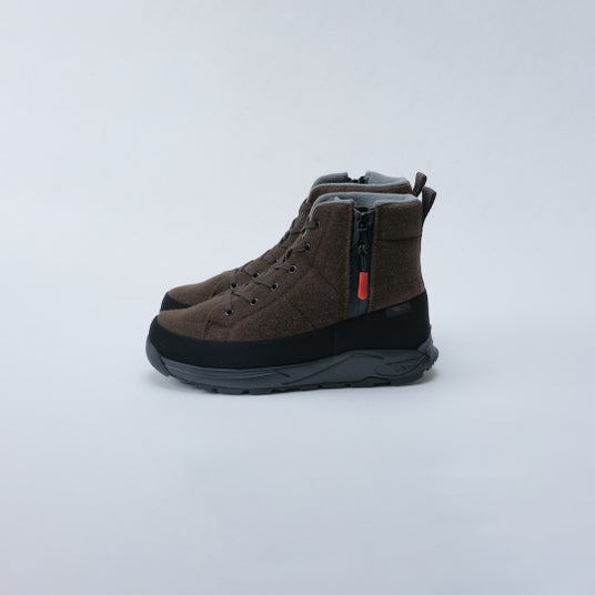 凍結した路面に対応したカジュアルスニーカー。止水ジップ仕様で水の浸入を防ぎながら、サッと履きやすく仕上げています。アッパーには温かみのあるポリエステルウールを採用。アウトソールの氷上防滑ラバー「グラスクロウ」が氷に対してグリップ力を発揮。温かさを持続する「サーマルパック」と「マイクロフリース」を採用し暖かさにこだわりました。 ※氷上防滑体験イベント試着品
