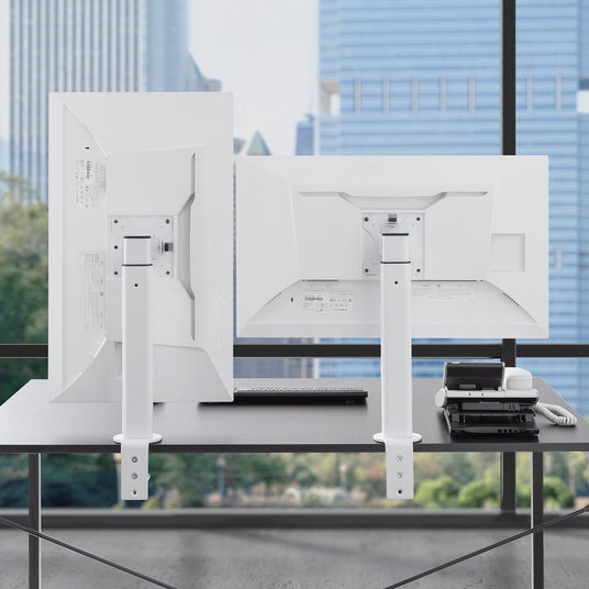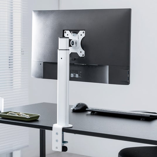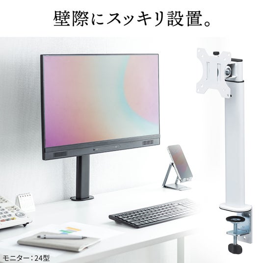 机際、壁際にスッと設置できるクランプ式モニターアームの白色を2月6日に追加発売。