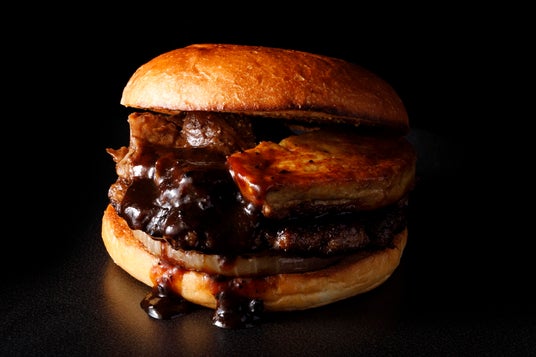『鳥取和牛バーガー ロッシーニ風』は、鳥取和牛のとろけるような脂の旨味に、フォアグラのクリーミーな口溶けとトリュフの芳醇な香りを組み合わせた、ロッシーニ風仕上げの贅沢グルメバーガーです。中には特製のトリュフソースと柔らかなビーフシチューも加わり、一層奥深い味わいをお愉しみいただけます。 『鳥取和牛バーガー ロッシーニ風』 ¥6,800