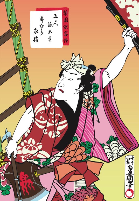 オープニング会場となる皇居外苑では、江戸時代の人気浮世絵師 歌川国貞(三代目豊国)が描いた役者絵「梨園侠客伝 五尺染五郎」を花絵バージョンにリライトし、約10,000本のカーネーションや木屑、砂等を使い、5.7m×8m(45.6平方メートル )の巨大な花絵で再現します。