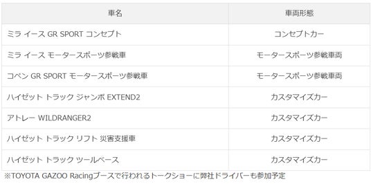 地域貢献では、災害支援を通じて得た知見をもとに、必要な電源やオリジナル防災セット等を搭載した「アトレー WILDRANGER2」や九州北部豪雨災害支援でボランティア サテライトセンターとして活躍した「ハイゼット トラック リフト 災害支援車」、工事現場の作業環境を改善する「ハイゼット トラック ツールベース」を出展します。