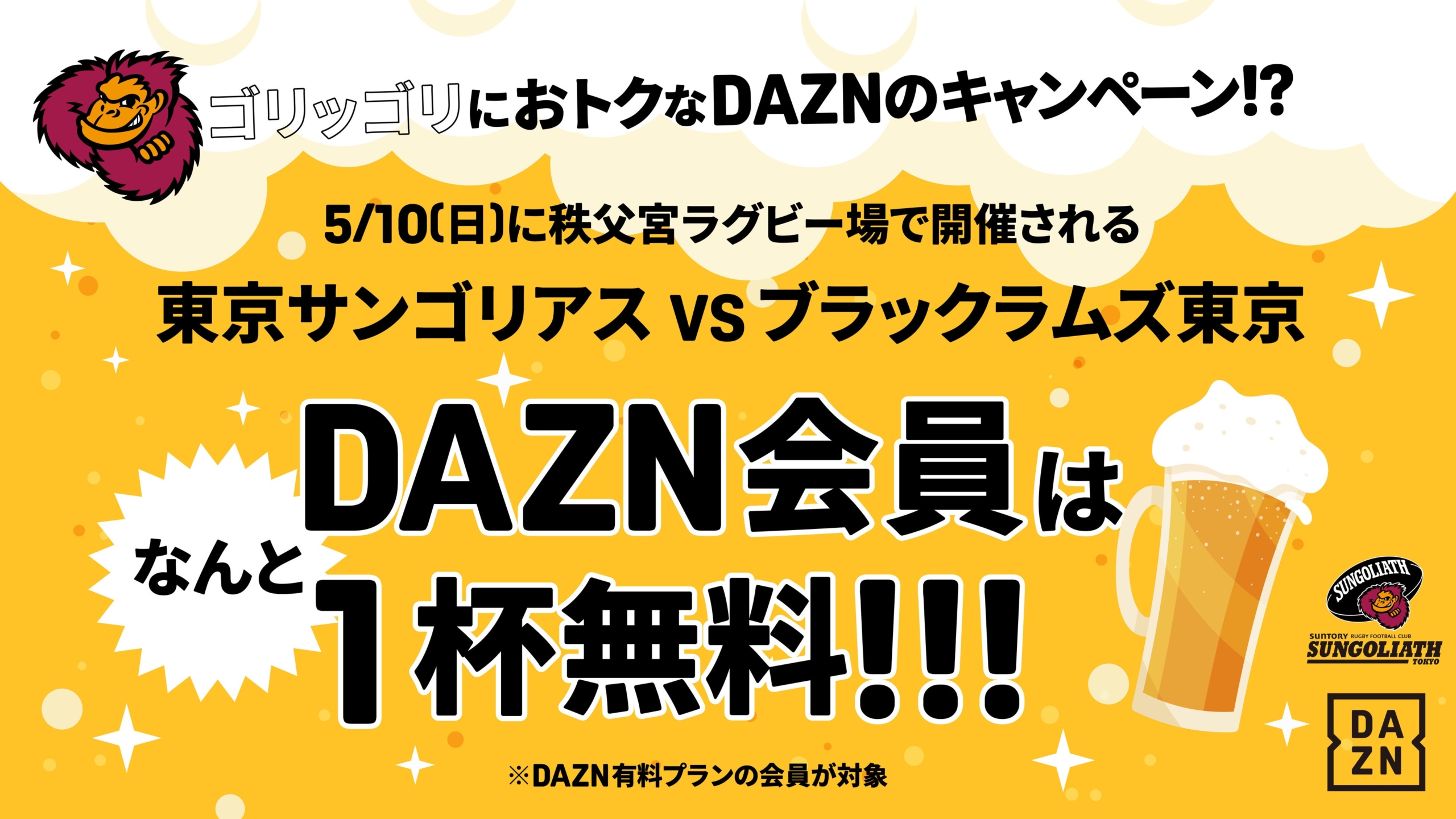 東京サントリーサンゴリアスは、スポーツ・チャンネル「DAZN(ダゾーン)」とのパートナーシップ施策として、2026年5月10日(日)に開催されるホストゲーム最終戦にて、観戦体験をアップデートする特別コラボ企画「DAZN FAN ZONE STAND」を実施します。