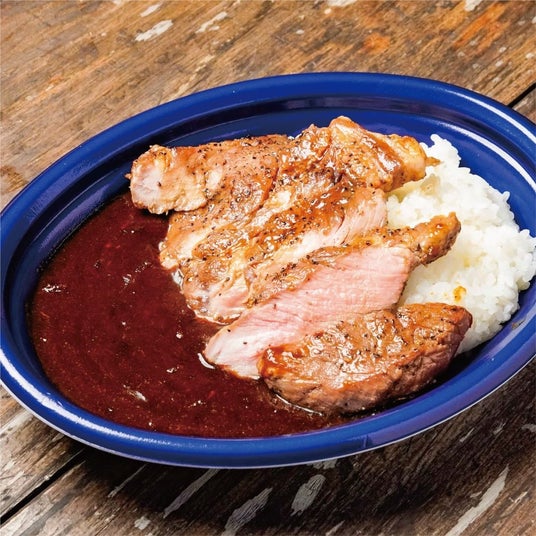 東京チカラめしカレー 四日市さくらポークのトンテキ盛り(¥2,280/ごはん大盛+¥200/ポテト・ドリンクセット¥2,680)