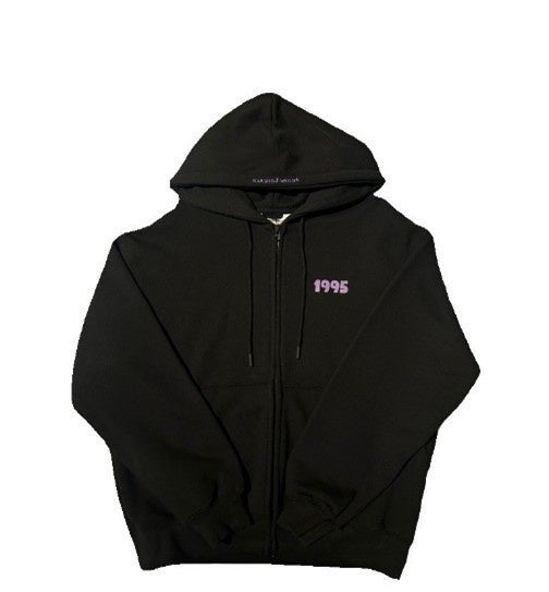 「1995」マークのついたジップアップタイプのパーカーです。フード部分に「YOUNG FOREVER」の刺繍が入っています。