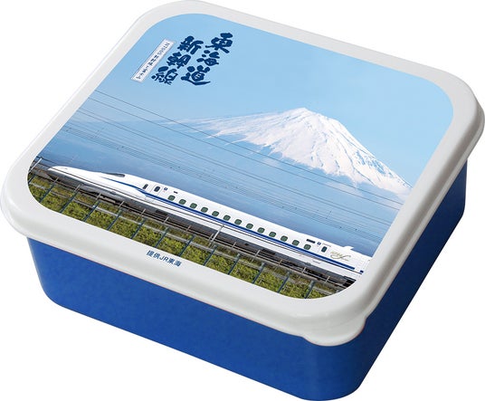 富士山の前を走るN700S新幹線の風景をプリントした容器は、お召し上がり後にもお弁当箱などに用いることができるランチボックス。
