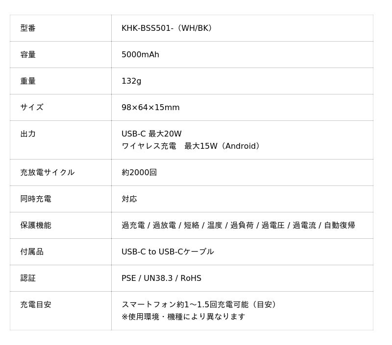 また、有線出力では最大20Wの急速充電にも対応し、ワイヤレスとの同時使用も可能となっています。