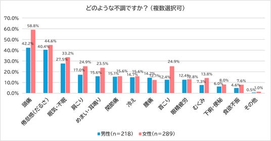 ・「頭痛」「倦怠感」は男女ともに4割以上、男女で傾向に違いも
