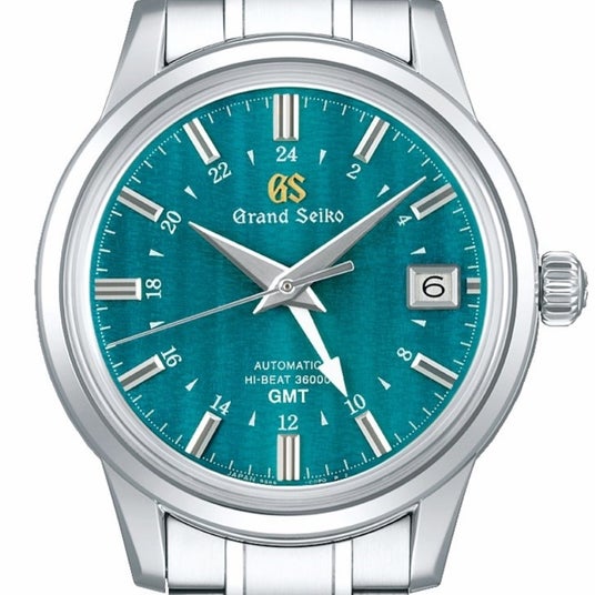 梅雨の時季、和光の店内からウインドウ越しに外を眺めると、銀座の街は独特なブルーグリーンに染まって見えます。そんな日本らしい色彩を透明感のあるブルーグリーン色と、ウインドウを流れる雨粒をイメージした繊細な型打ち模様で表現した文字盤が特徴です。白色のGMT針を採用することで、さわやかなデザインに仕上げつつ、高い視認性を確保しています。