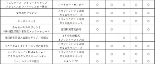 特別観覧席をご購入されたお客様お一人様につき1枚、座席購入時に入口販売所でガラポン抽選券を配布します。