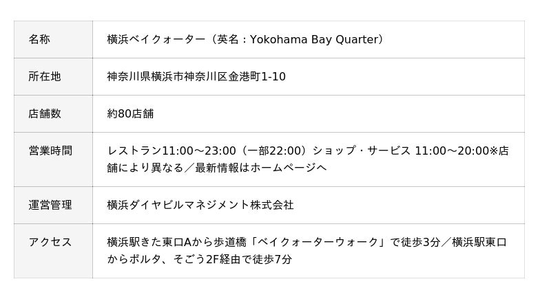 内容は状況により予告なく変更となる場合があります。最新情報は横浜ベイクォーターホームページをご確認ください