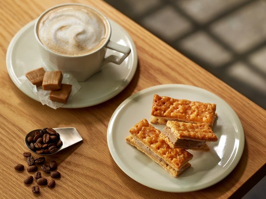 エスプレッソを効かせたクッキー生地で、ホワイトミルクのチョコレートをサンドしました。ショコララテのようなチョコレートの濃厚な甘さとミルクのクリーミーな味わいが広がります。