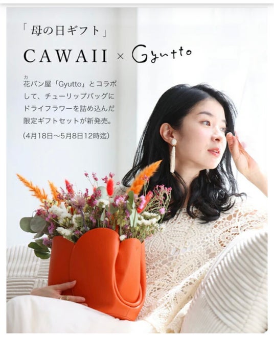 レディースアパレル通販を運営する株式会社ワンピース(本社:兵庫県加古川市 代表取締役:春木晃子)は、母の日ギフトとして、運営するブランドCAWAII(カワイイ)と体験型花屋Gyutto(ギュット)のコラボ商品を2025年4月18日よりオンラインサインにて販売します。お部屋の飾りとしても、実用バッグとして長くご使用、お楽しみいただける商品です。