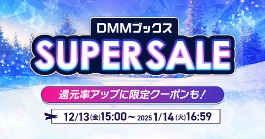 合同会社DMM.com(本社:東京都港区、会長 兼 CEO:亀山敬司 以下「DMM」)の電子書籍サービス「DMMブックス」(https://book.dmm.com/)は、2024年12月13日(金)から2025年1月14日(火)までの期間中、「DMMブックススーパーセール」を開催いたします。