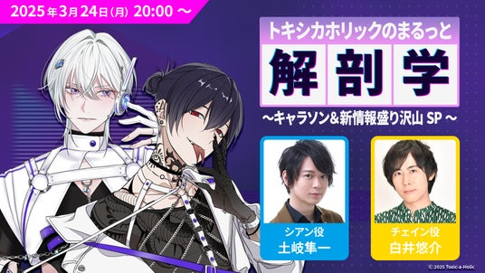 公式番組は3月24日20:00より『Toxic-a-Holic』公式YouTubeチャンネルにて生配信にてお届けいたします。キャラクターソングの全貌に迫るほか、新情報も盛りだくさんでお届けするスペシャルな放送です。