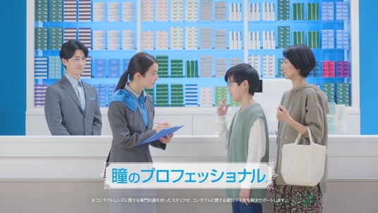 本TVCMは、イリュージョンを使って生徒のコンタクトデビューを応援する“イリュージョン先生“を演じる永野さんが“ジュニアコンタクト※1入学式”に登壇し、生徒と保護者にコンタクトデビューを呼びかけるシーンから始まります。コンタクトデビューに子どもたちがワクワクする中、保護者の不安な様子に、永野さんが「ほいっ!」と指を振ると・・・何もなかった壇上に瞬く間にアイシティの店舗が出現!“瞳のプロフェッショナル※2”がコンタクトレンズ選びや、眼科へのご案内※3まで丁寧にサポートすることで、「まるごと安心」なコンタクトデビューを遂げるというストーリーです。