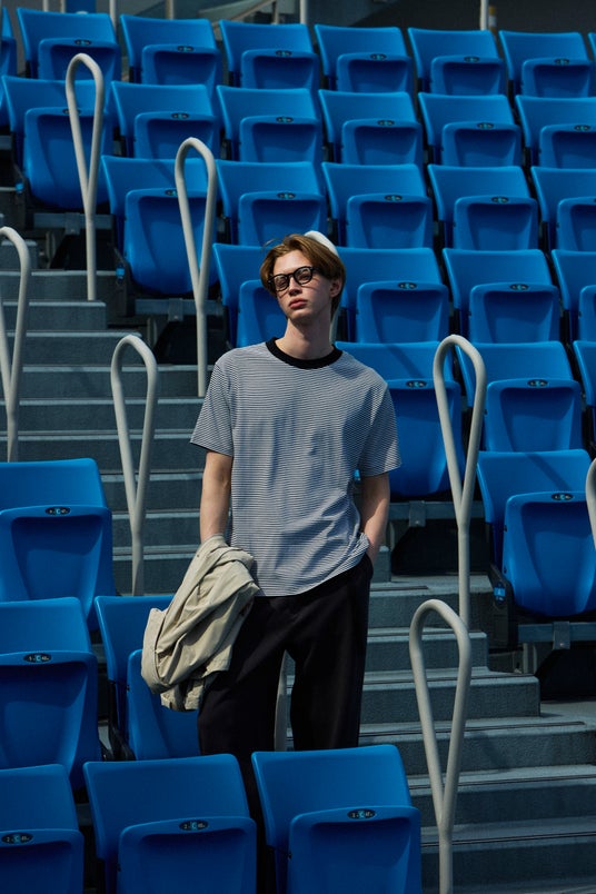 Anti Soaked(R) 汗染み防止 ボーダーミドルシルエットTシャツ ¥7,920(税込) カラー:チャコール/ホワイト/ベージュ/L.カーキ サイズ:S/M/L