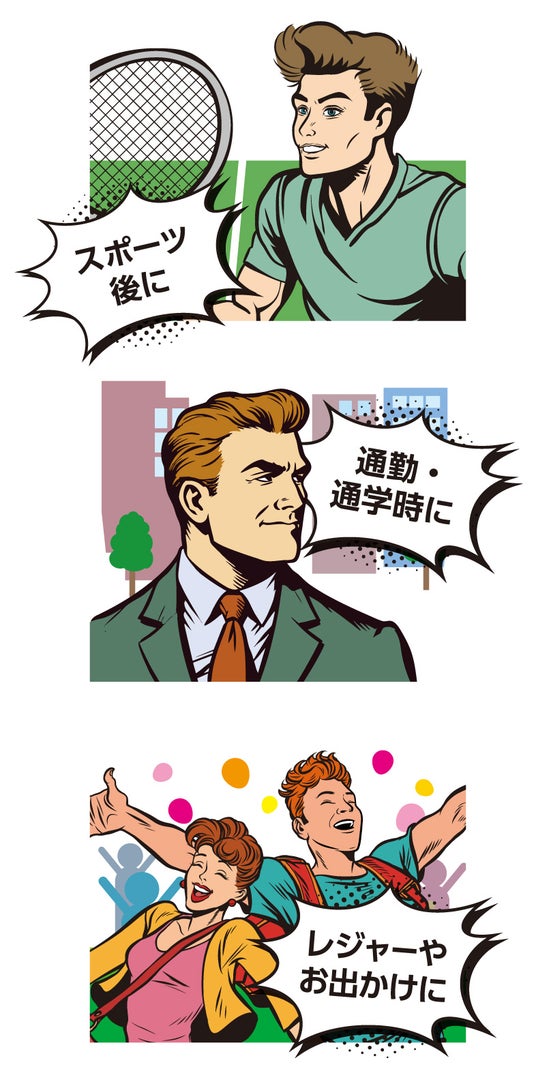 ●スポーツの後や通勤・通学時に。レジャーやお出かけにも。