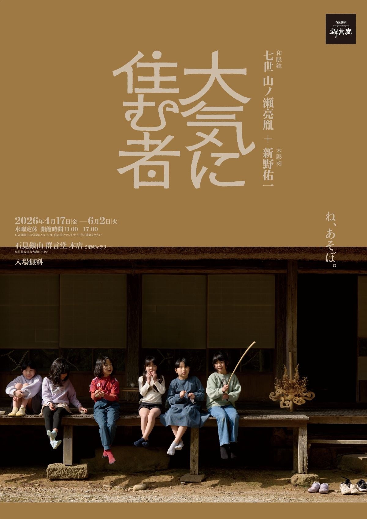 「根のある暮らし」を提案する石見銀山 群言堂(株式会社 石見銀山生活文化研究所、島根県大田市)は、2026年4月17日(金)より、群言堂本店2階ギャラリーにて、企画展『七世 山ノ瀬亮胤+新野佑一 大気に住む者』を開催いたします。
