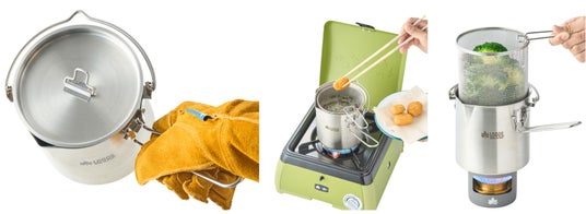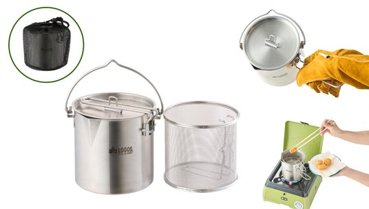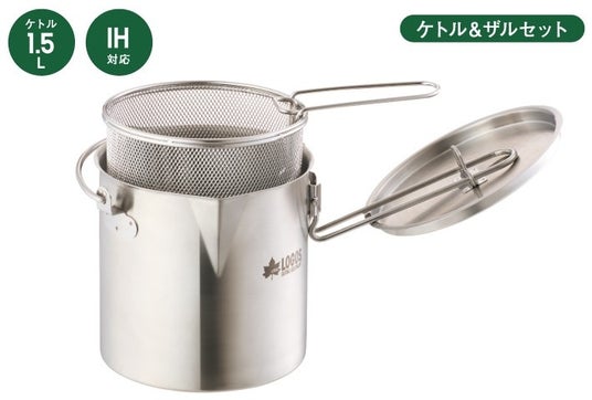 さまざまな調理に対応する万能ケトルと専用ザルのセット「LOGOS フィールダーケトル1500」を、アウトドアライフをはじめ、ご自宅でもぜひともご活用ください。