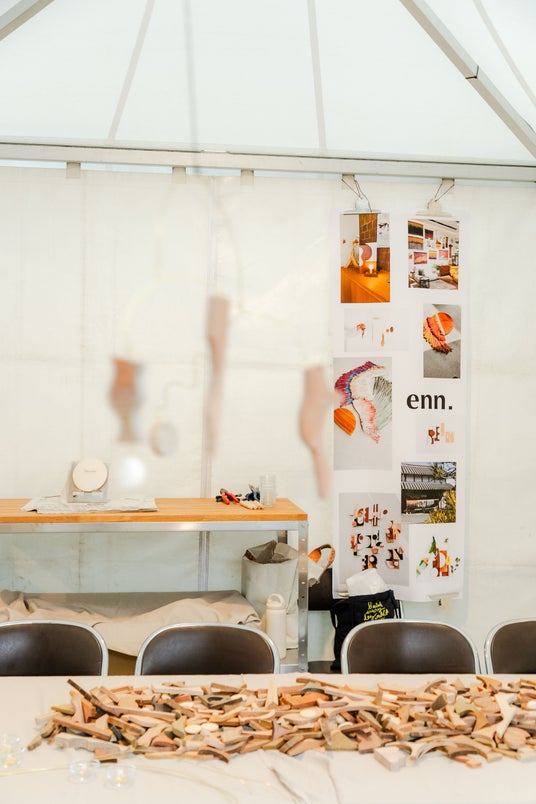 キャンドルやウエア、キッチンカーでのお花やフード販売やワークショップと、ライフスタイルに寄り添う提案を行いながら、コミュニティを広げることができました。  【enn. 空間を癒す木製モビールづくり】 さまざまな形の天然木パーツから、好きな色や形をまず選んで、繋げてモビールを作るワークショップを実施。