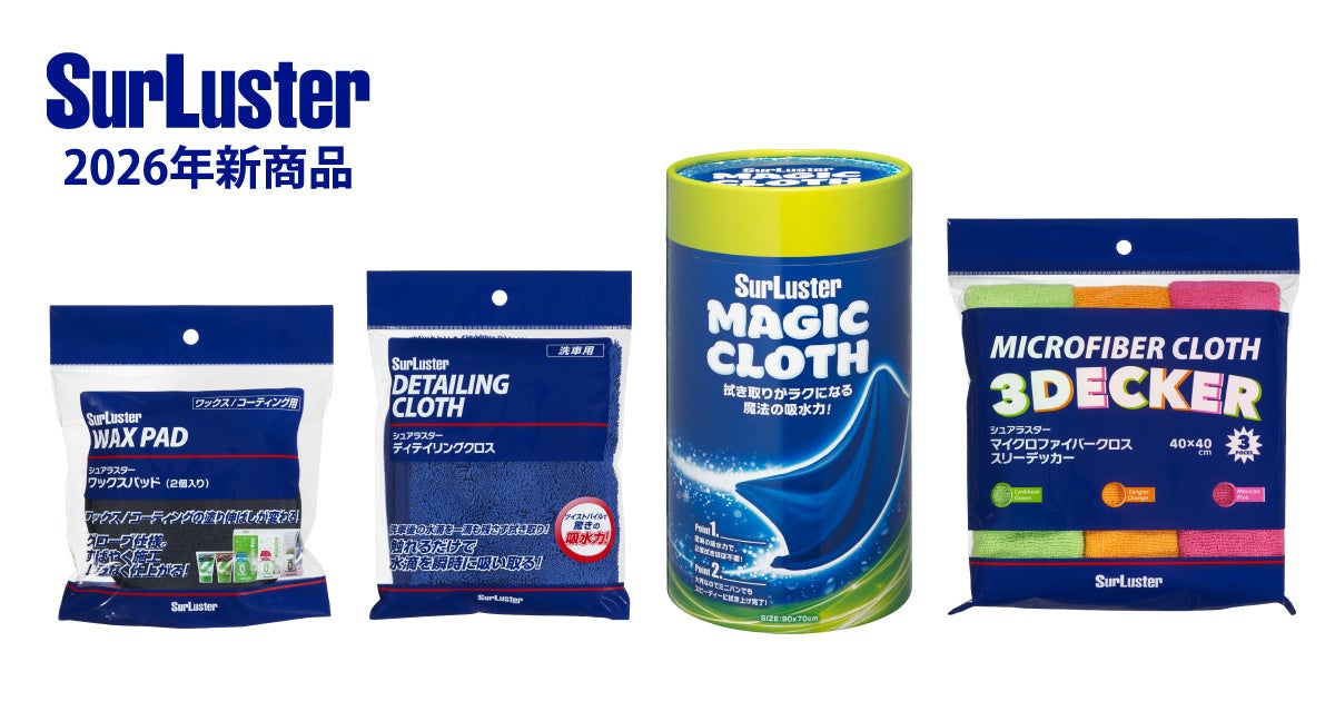 カーケア用品メーカー シュアラスター株式会社は、洗車後の拭き上げからワックス・コーティング施工まで、仕上がりと作業効率を大きく向上させるクロス&アプリケーター4商品を2026年3月上旬より全国のカー用品取り扱い店およびECサイトにて順次発売いたします。
