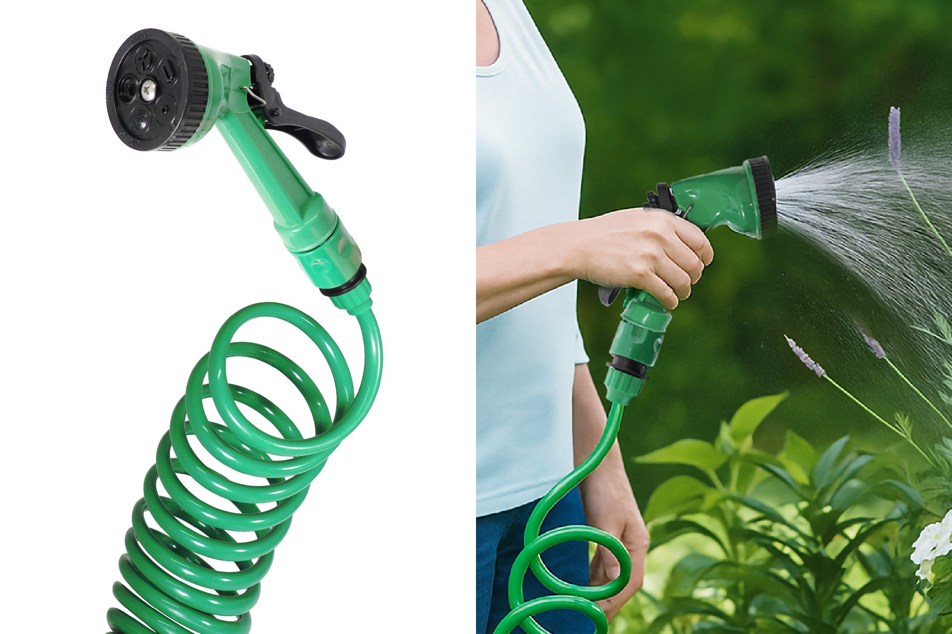 洗車やガーデニングで面倒な「ホースの収納」が巻き取り不要の「スプリング状ホース」で大解決!