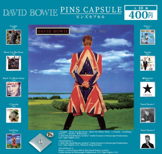 各アーティスト、厳選したアルバムジャケットやロゴ、アーティスト写真をデザインしたピンバッジ(ピンズ)が専用台紙と共にカプセル内に収納されており、コレクションにも最適です。