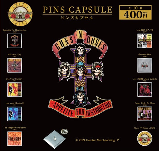 2024年6月に発売し、お客さまにご好評をいただいた、海外アーティストのアルバムジャケットやロゴをデザインしたピンズカプセルトイシリーズ『THE ARTIST COLLECTION』。第1弾の3アーティスト(THE BEATLES/QUEEN/DAVID BOWIE)、第2弾の2アーティスト(The Rolling Stones/KISS)、第3弾のBON JOVI、第4弾のAEROSMITHに続き、このたび第5弾として、4アーティスト(THE BEATLES/Guns N' Roses/The Rolling Stones/DAVID BOWIE)のカプセルトイの発売が決定いたしました。本日より全国のHMV(21店舗)、gashacoco(ガシャココ)、ガシャポンのデパートほか、カプセルトイコーナーにて販売を開始いたします。
