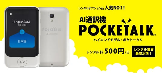 人気のAI翻訳機『ポケトークS』もWIFIとセットでお貸出し中です!