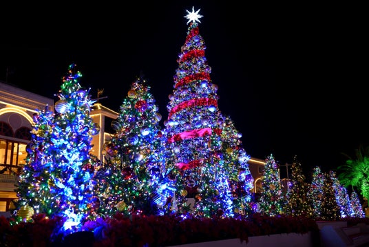 「ジョイアマーレの浜辺」にカラフルに輝くクリスマスツリーが登場。クリスマスツリーを舞台に行われる点灯式で園内のイルミネーションが一斉に点灯します。