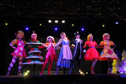 360°で繰り広げられる3Dマッピングの冬季限定バージョン。氷の世界や可愛らしいお菓子の家を表現したプロジェクションマッピングとショーキャストがコラボレーションしたショーです。
