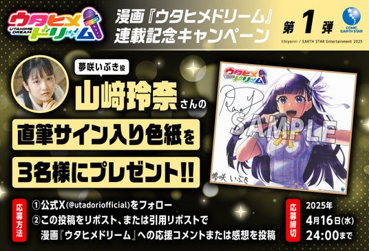 漫画『ウタヒメドリーム』好評連載中!山崎玲奈さんの直筆サイン入り色紙が当たる特別キャンペーンもスタート!