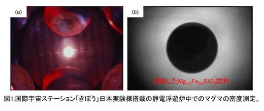 国際宇宙ステーション「きぼう」日本実験棟搭載の静電浮遊炉を用いたマグマ実験により、これまで困難であった超高温下における鉄に富むケイ酸塩マグマの密度測定に成功しました。