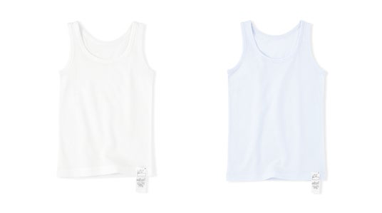 通常の型よりネック部分をやや広めにすることで、Tシャツのネックから見えにくい仕様にしました。ビジネスシャツやTシャツの下に着やすく、猛暑でも役立ちます。カラーはベーシックな白・黒と、汚れが目立ちにくいライトグレーの3色です。綿はオーガニックコットン100%です。