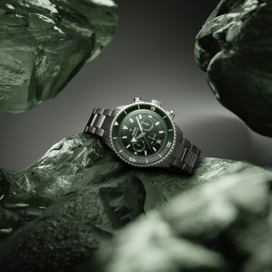 プラズマ×ダークグリーンは、まるでコンクリートジャングルの風景をそのまま腕元に映し出したような仕上がりになっています。 完璧なバランス キャプテンクック ハイテクセラミック クロノグラフは、ワイルドな環境でも頼りになる高性能ウォッチでありながら、スポーティすぎない洗練されたルックスを実現。