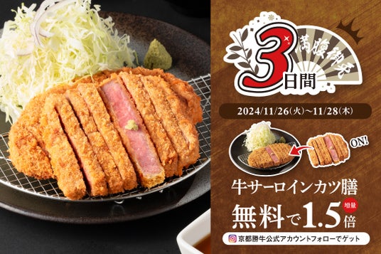【第1弾】“満腹御免”をテーマに「牛サーロインカツ膳」が無料で1.5倍に増量!