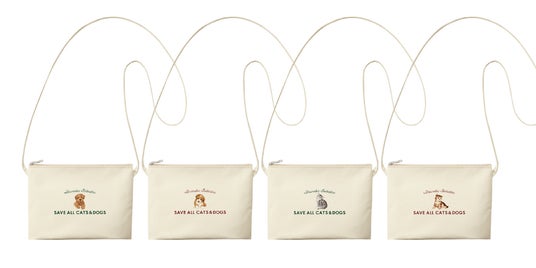 散歩やちょっとしたお出かけで使えるバッグです。底にマチが付いているので、コンパクトながら、スマートフォンとお財布を十分に入れられるサイズです。商品名にわんちゃん猫ちゃんの名前を付けて4種類を取り揃えました。サコッシュは、犬猫生活チャリティのアパレルで初のラインナップです。