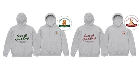 夏に犬猫生活の会員限定でチャリティTシャツのデザインの投票を行った際に、最も人気だった「ヴィンテージデザイン」をパーカーにしました。裏起毛のため、これからの季節にピッタリです。