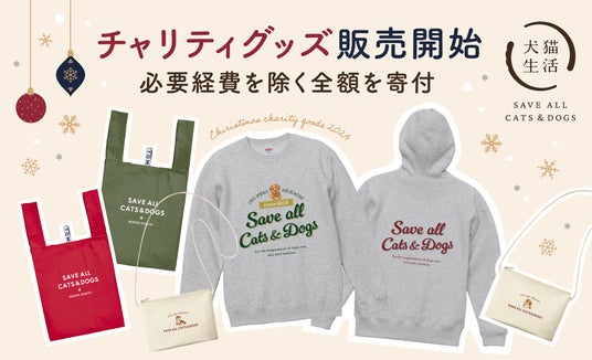 「全ての動物とその家族の幸せの生活のために。」を理念に、国産・無添加(※1)のプレミアムペットフードの販売をはじめとしたペットケア事業を展開する犬猫生活株式会社(本社:東京都新宿区、代表取締役:佐藤淳、以下「犬猫生活」)は、"犬猫生活クリスマスチャリティ2024"の第2弾として、犬猫生活オリジナルデザインのアパレルを中心としたグッズ5種を発売します。販売期間は12月4日(水)19:00~12月8日(日)23:59の5日間で、12月20日頃より順次発送します。