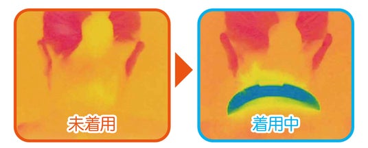 ※前日より冷蔵庫で馴染ませた試料を、気温35℃の環境下で、被験者A(31歳男性:身長184cm、体重72kg)が着用し、試料の表面温度を測定した結果、約30℃以下を約2時間持続しました。