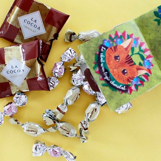 ココアアソートのチョコレート。 食べ終わってからも、小物入れなどにお使いいただくのもかわいいですよ。