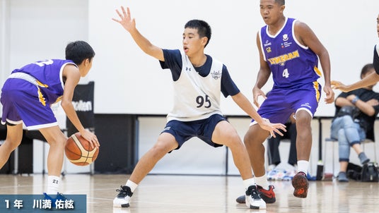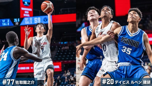 Bリーグユースの試合では、200cmを超えるような留学生がいるチームと対戦する機会は稀ですが、近年は強豪の部活動とも試合ができる大会も少しずつ増え、貴重な経験を積むことができています。将来、プロ選手を目指す#77 佐取選手は「この大会の試合は全て自分たちの成長につながると思っています。相手に大きな選手がいると、普段ドライブできる場面でも簡単には行けなくなります。そこをどう打開するかはやっていて楽しいですし、ワクワクします」と頼もしい言葉を発しました。
